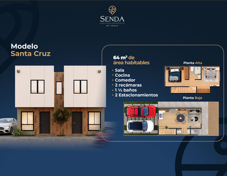 Modelo Santa Cruz – 69 M2 Casas de 2 niveles con 2 recámaras y 1.5 baños. Estacionamiento para 2 autos, perfecto para quienes buscan practicidad y confort.