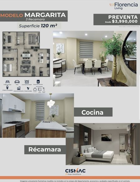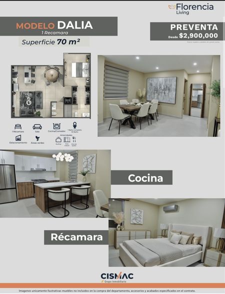 De 1 a 3 recámaras desde los 70m2 hasta los 120m2 con precios desde $2,799,000 pesos hasta $3,849,000 pesos.