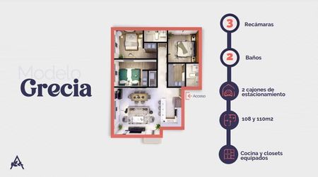 108 a 110 m2, con 3 recámaras, 2 baños completos