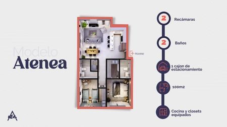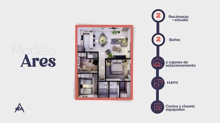85.58 m2, con 2 recámaras, 2 baños completos