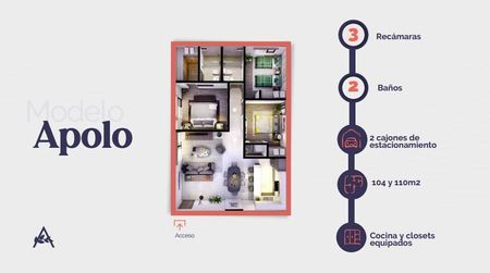 104 a 110 m2, con 3 recámaras, 2 baños completos