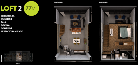 Condominios desde 78m2, que constan de 1 recámara, un baño, un cajón de estacionamiento, balcón (algunos) y acabados modernos y de lujo. Se entregará con electro-domésticos (estufa, campana, refrigerador, lavadora, secadora y microondas), cocina, closets y baños.