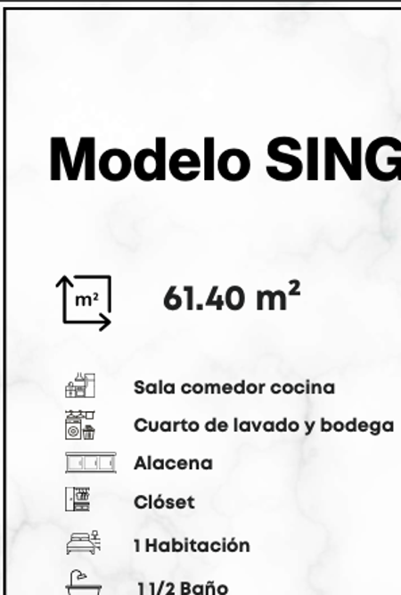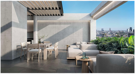 Departamentos de 61 m²: Espacios vanguardistas con 1 recámara y sala de doble altura, perfectos para parejas jóvenes o personas que valoran el diseño eficiente y contemporáneo.