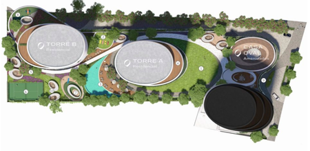 OVVA tiene un diseño único y atemporal, en donde se levantan 2 monumentales torres residenciales y 1 torre corporativa, integradas en un gran plan maestro rodeado de vegetación y un gran jardín elevado que conecta a las personas con servicios y amenidades armónicas.