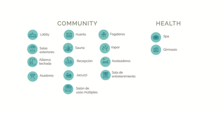 • Rooftop con firepits, área de reuniones, asadores y huerto