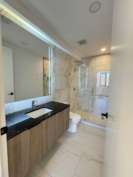 Tres baños completos.